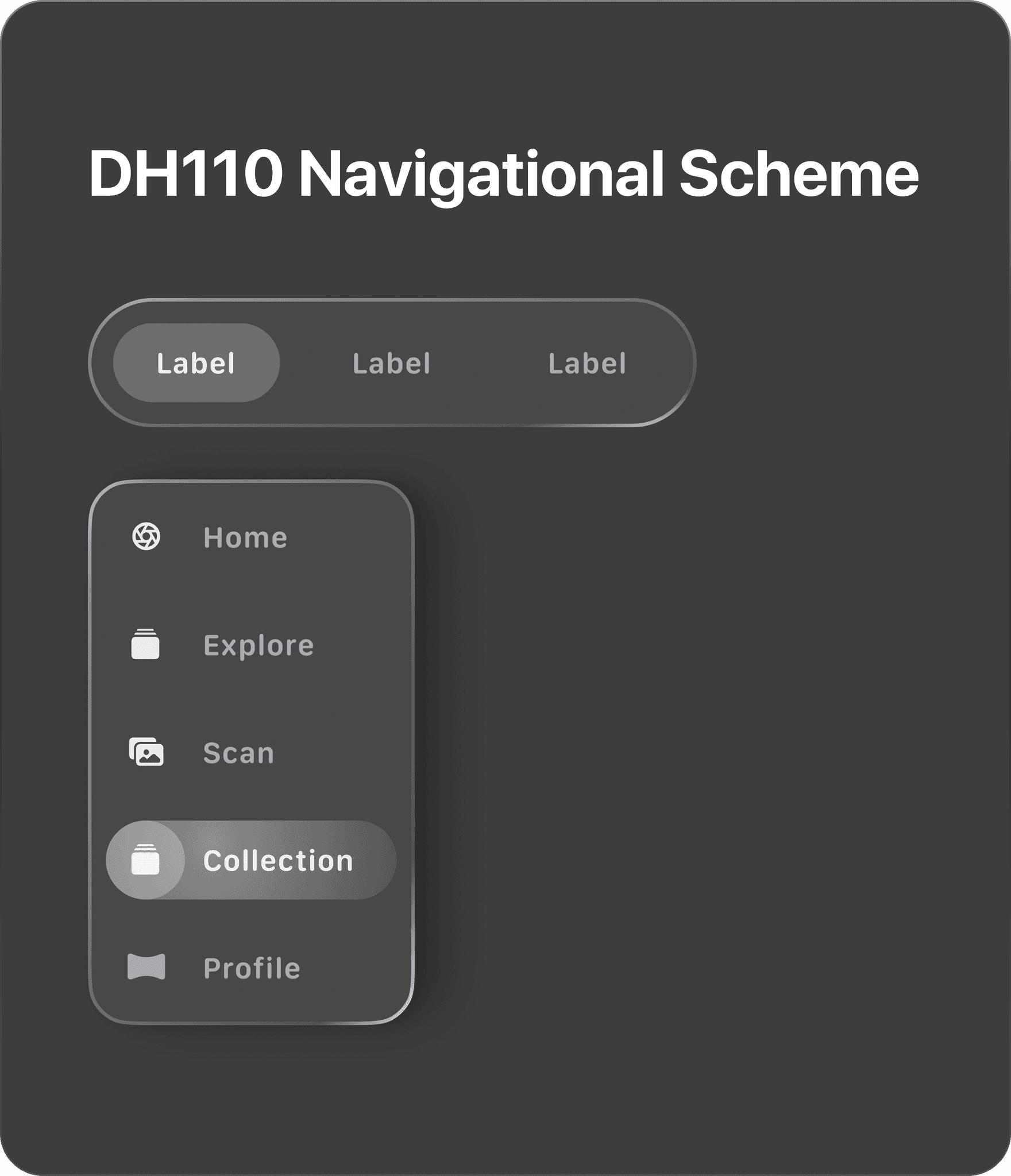 I structured the app’s sitemap to flow naturally from home discovery (nearby and recommended content) to deeper experiences: scanning objects, listening to stories, and saving personal collections. The navigation scheme was built around a bottom navigation bar with direct access to Home, Scan, Collections, and Explore—simplifying the experience while keeping essential functions one tap away.