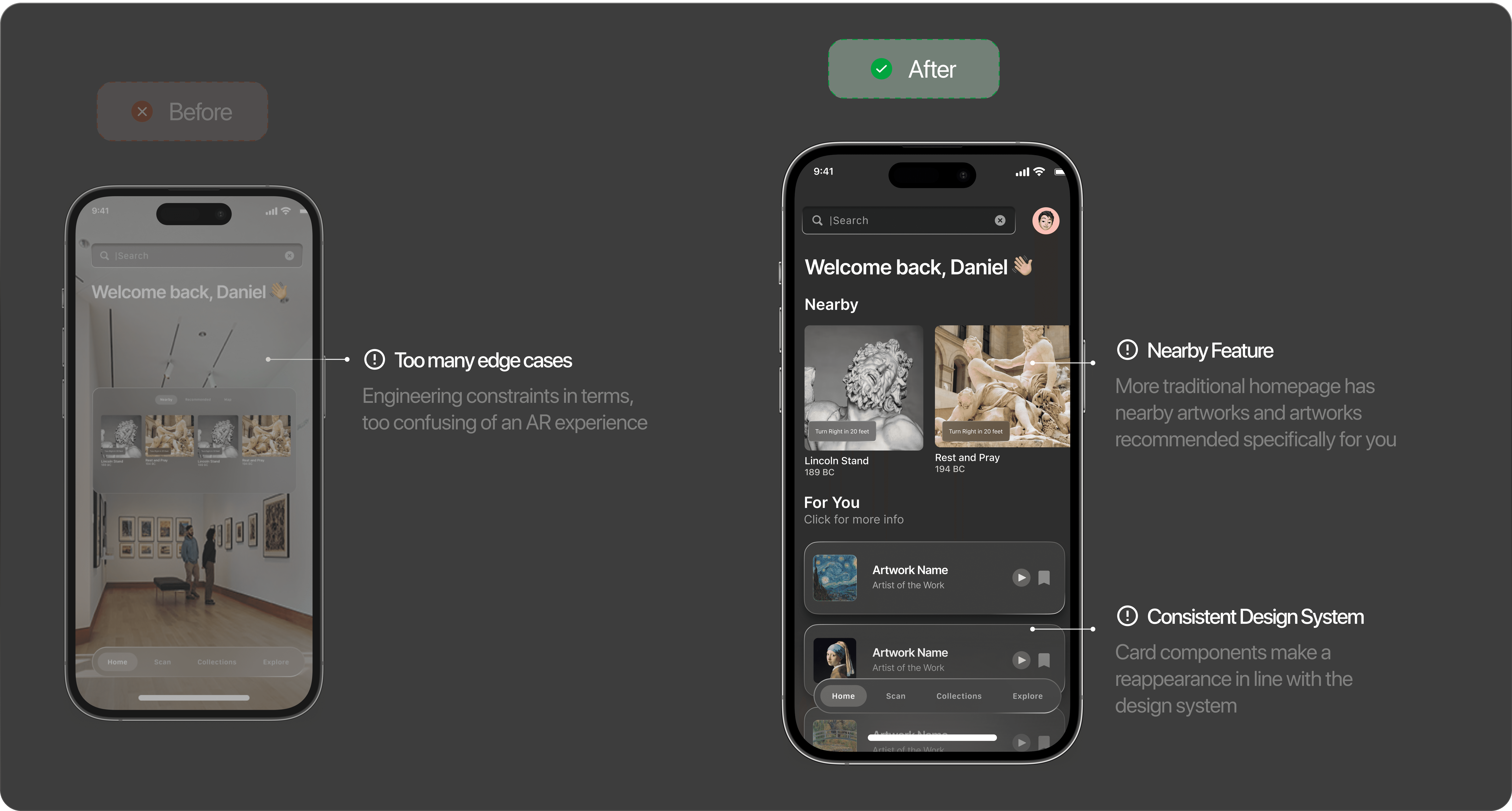 The project was shaped by the constraints of working solo in a class context, without engineering support or real museum partners. In a future iteration, I’d love to explore deeper integrations with museum databases and more nuanced personalization of content based on visitor preferences and movement in the space.
